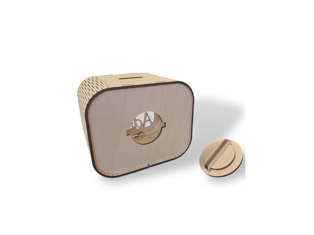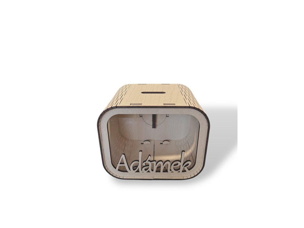 Dřevěná kasička se jménem