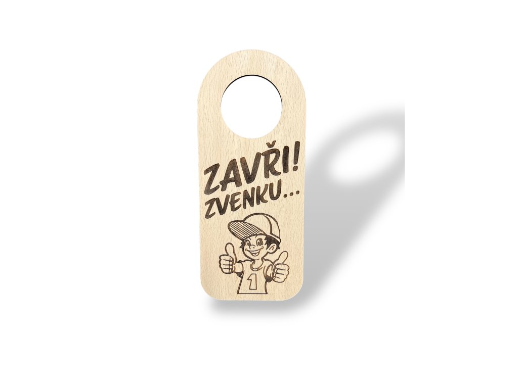Dřevěná visačka - Zavři z venku chlapec